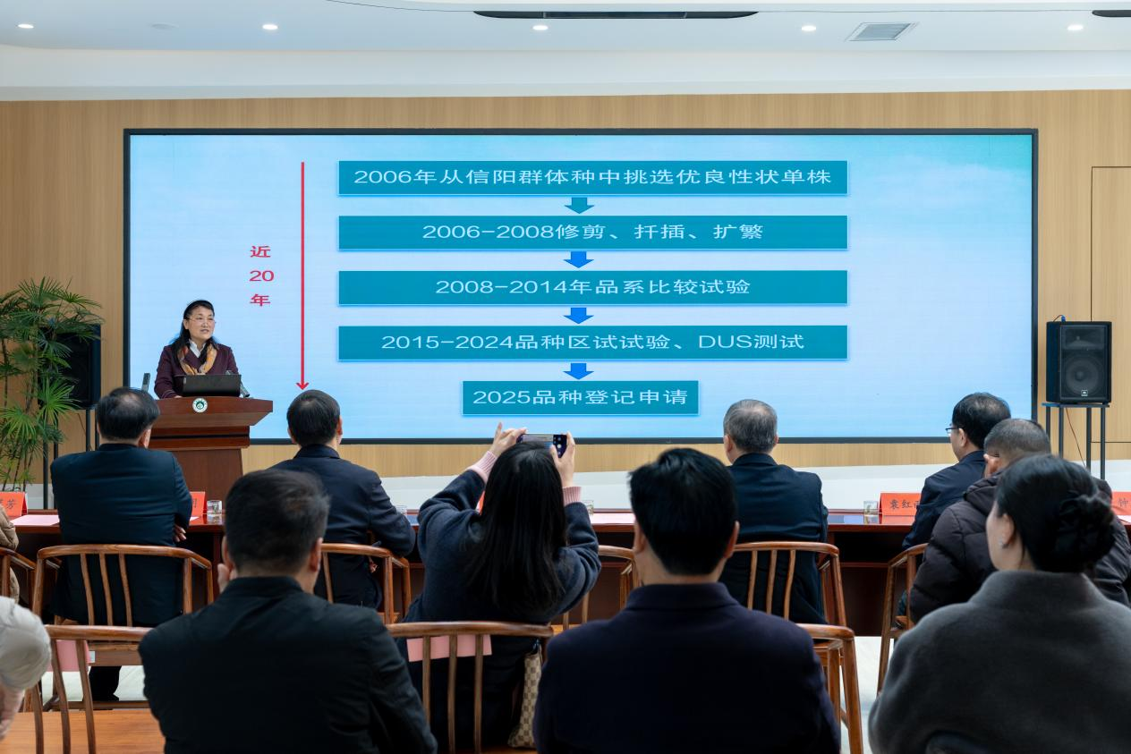 会上,谢正军指出,茶树育种是茶产业高质量发展的核心根基,‘豫茶2号’‘豫茶5号’两个国家级茶树新品种,是信阳师范大学茶树种质创新团队立足江北茶区生态特点与市场消费需求,经多代选育、多点试验、多指标综合评价育成的优质新品种。涂友超表示,信阳师范大学始终紧贴河南茶产业发展需求,坚持产教研深度融合,推动科研成果落地转化。‘豫茶2号’‘豫茶5号’的成功选育与登记,正是学校茶学团队服务地方产业的生动实践。下一步,学校将持续强化学科建设,健全成果转化机制,产出更多贴合产业需求的科研成果,为河南茶产业高质量发展和乡村振兴提供有力支撑。