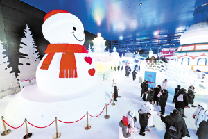游客在哈尔滨冰雪大世界梦幻冰雪馆游玩。 哈尔滨日报记者 刘洋摄