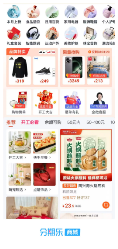 消费热度回升之际,如何更好地满足消费者合理消费需求,助力消费热情稳步释放,成为检验企业服务能力的重要标尺。作为国内首家线上分期购物商城,分期乐商城长期聚焦年轻用户消费需求,成立十余年来,商城充分发挥场景优势与分期特色,在商户引进和品类运营上重点打造潮流分期体验,帮助年轻人降低购买门槛,灵活分期、轻松消费。为更好地服务民生消费,近期分期乐商城先后推出双十二年终盛典、年货节、春节不打烊、百亿贴息等活动,在保障品质商品供给和履约能力的基础上,通过官方贴息、优惠叠加等方式,最大程度地让利用户,提升用户体验,助力消费热情稳步释放。
